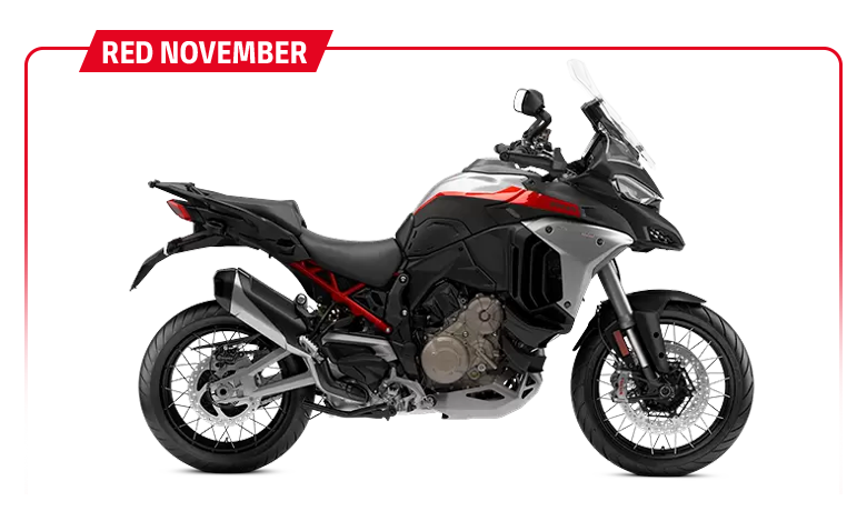 Supervalorização da sua seminovaMultistrada V4 S (Red e Aviator Grey). Opção de financiamento com taxa 0%. Ofertas válidas nas Concessionárias Ducati Autorizadas para motocicletas básicas zero-quilômetro. Preços, ofertas e condições de financiamento válidos até 30/11/2025 ou enquanto durarem os estoques. Consulte a disponibilidade na concessionária da sua região. -